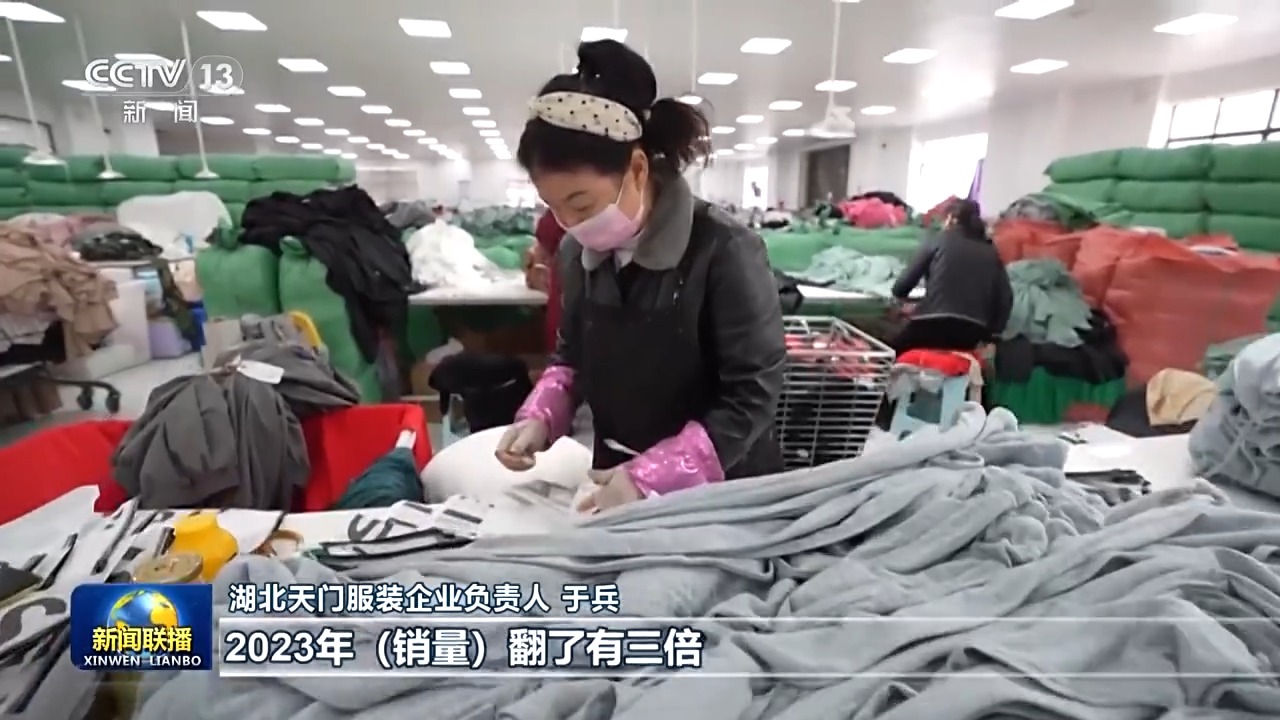 湖北天门服装企业负责人于兵:2023年(销量)翻了有三倍,确实没想到(销量)会爆发得这么厉害。